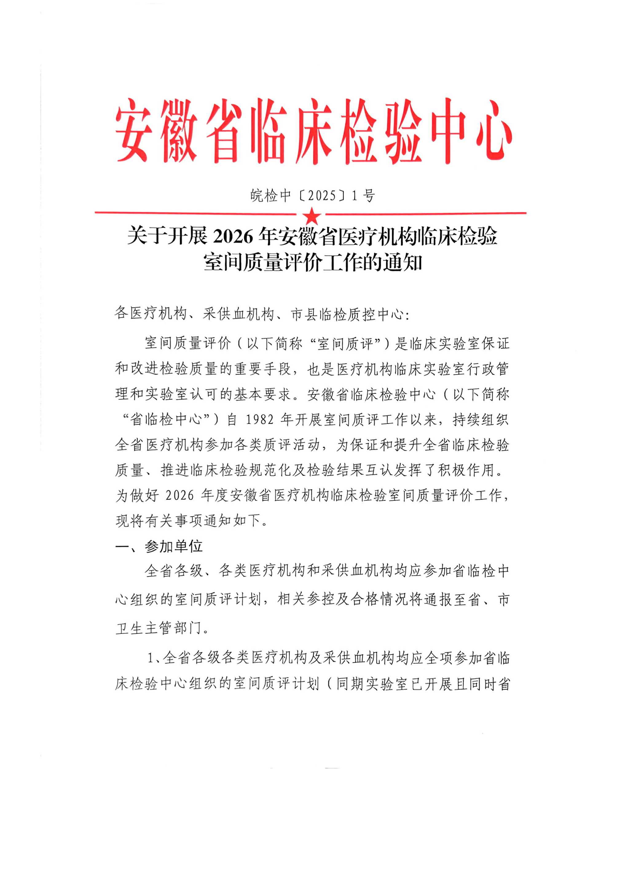 附件2:关于开展2026年安徽省医疗机构临床检验室间质量评价工作的通知(盖章版)/uploadfiles/2025/09/20250909113205024.pdf